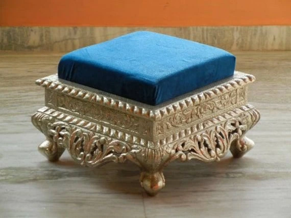 Dimensions: 18 inches x 18 inches || Coating– White Metal Sheet || Wood quality– Premium Teakwood || Seat: Premium Quality Velvet Seat