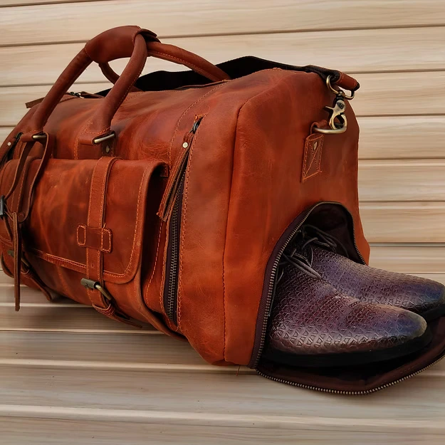 Target Handicrafts offers you this Handmade Leather Duffle Bag. It is designed for durability and style, making it the perfect choice for travelers, gym-goers, and those looking for a high-quality groomsmen gift.