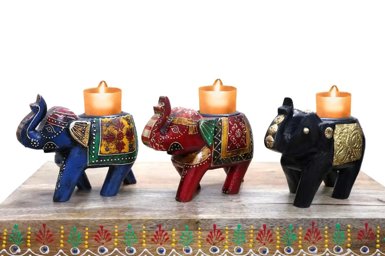 Infuse your home with the warmth of tradition and the glow of craftsmanship with this beautifully hand-painted Elephant Shaped Candle Holder. Crafted entirely by hand, this exquisite piece showcases the skills of Indian artisans, bringing life to every home.