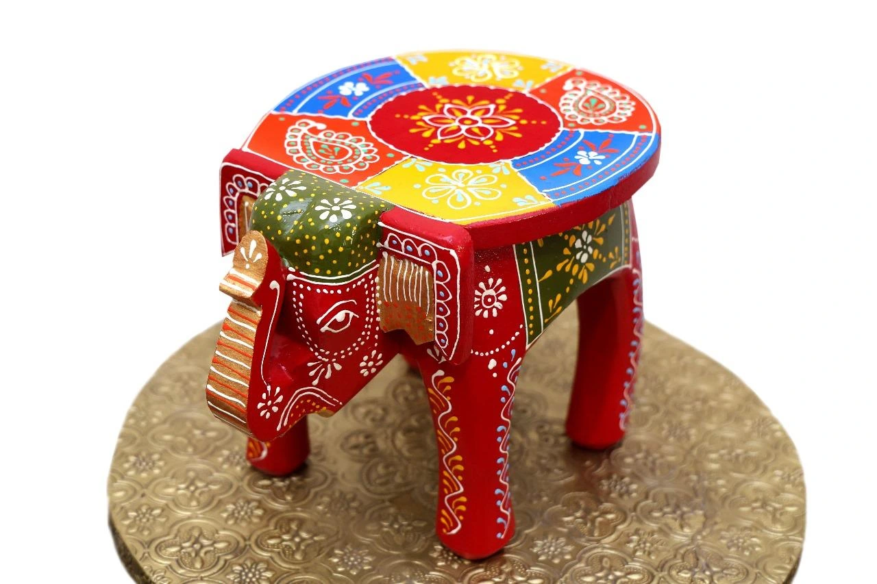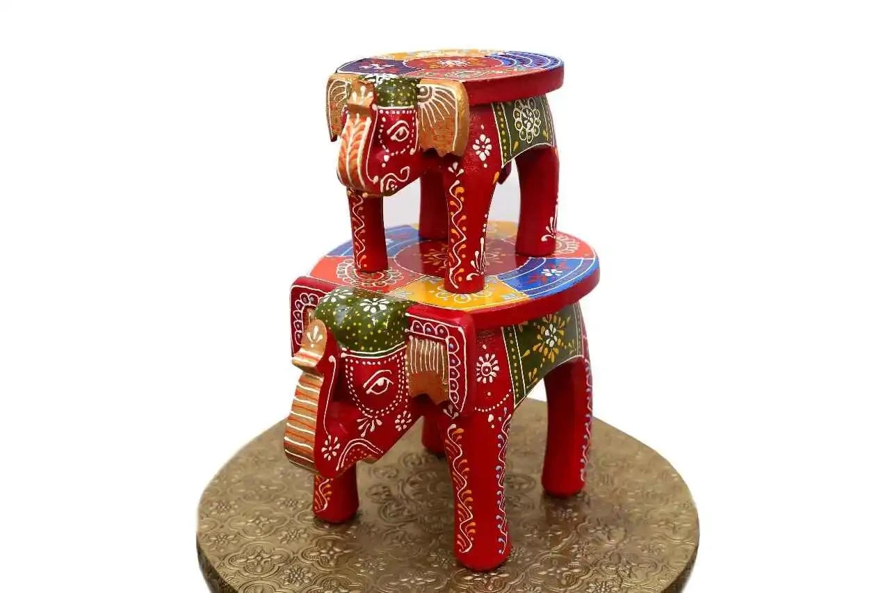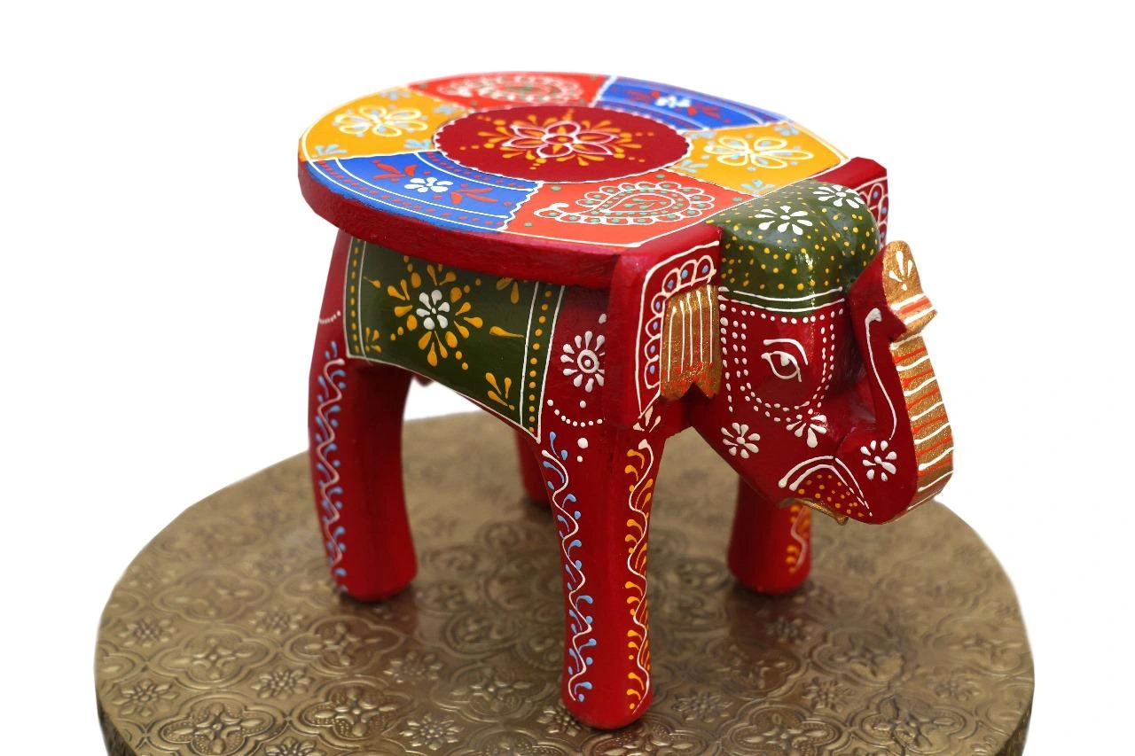 Bring home a vibrant piece of Indian craftsmanship with this Wooden Hand-painted Elephant Stool, available in multiple sizes. Lovingly handmade and intricately hand-painted by skilled artisans, this charming stool features a majestic elephant shape adorned with traditional Rajasthani motifs and a burst of festive colors.