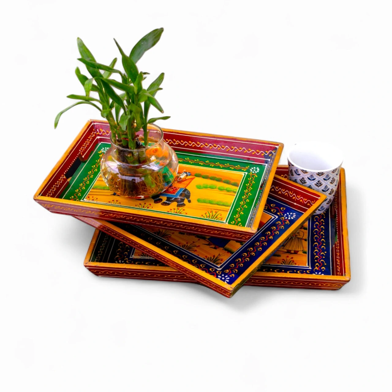 Premium Hand-painted wooden tray set by Target Handicrafts