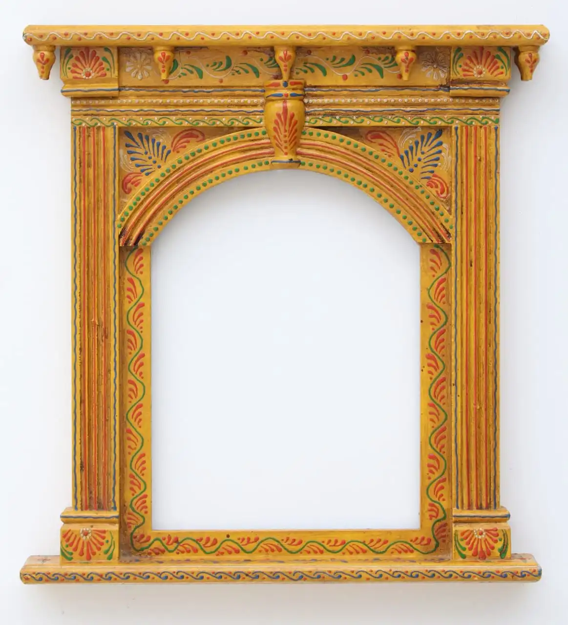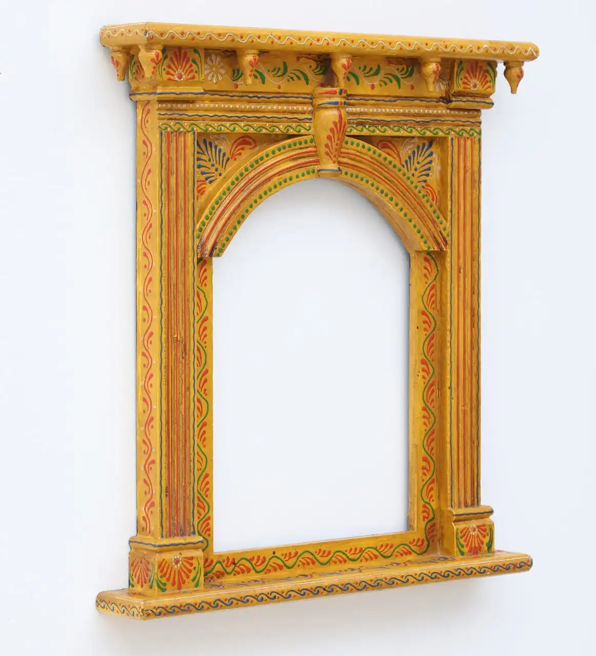 A Beautiful Hand-Painted Yellow Traditional Wooden Jarokha